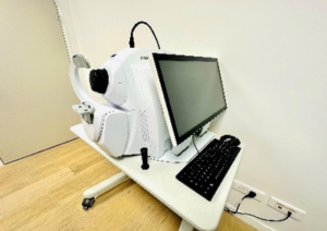 L’OCT (Optical Coherence Tomography), ou tomographie par cohérence optique en français, est une technique d’imagerie en ophtalmologie qui permet d’observer la rétine, les différentes couches qui la composent (macula, fibres optiques, cornée), ainsi que l’analyse du nerf optique ou l’angle irido-cornéen. Cet examen est souvent utilisé pour diagnostiquer et surveiller les maladies rétiniennes telles que la dégénérescence maculaire liée à l’âge, le glaucome, le diabète ou encore l’œdème maculaire.