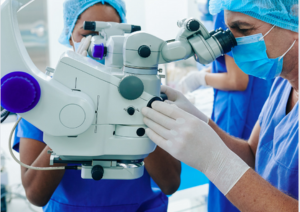 Le laser émet un faisceau de lumière concentrée qui permet les interventions précises sur les tissus de l’œil.