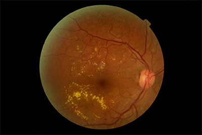 La rétinopathie diabétique est une complication du diabète (touchant en majorité les diabètes de type 2), elle atteint voire dégrade progressivement la rétine périphérique et aussi centrale. Les facteurs de risques les plus communs sont l’ancienneté du diabète, un diabète instable, l’hypertension artérielle, le tabagisme. Un contrôle annuel (fond d’œil) est nécessaire chez un ophtalmologue lorsqu’une personne est diabétique